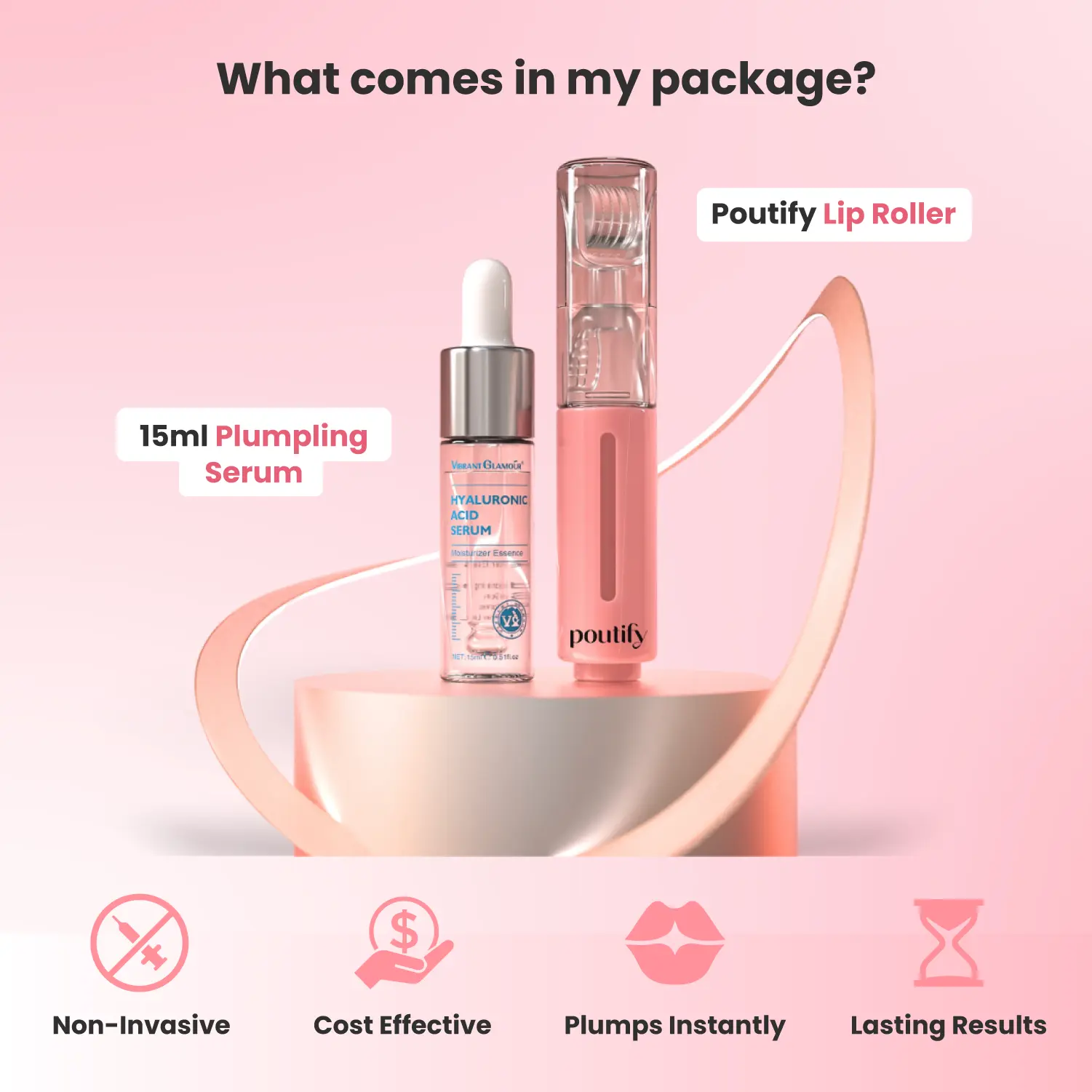 At Poutify™, we prioritize the health and beauty of your lips. Our lip plumping roller is crafted with high-quality, lip-friendly materials to ensure a gentle and safe lip care experience. Our plumping serum is enriched with nourishing ingredients that boost collagen production, leading to increased lip volume and improved lip texture. Hyaluronic acid, a key component of the serum, works to attract and retain moisture, leaving your lips irresistibly soft and supple.