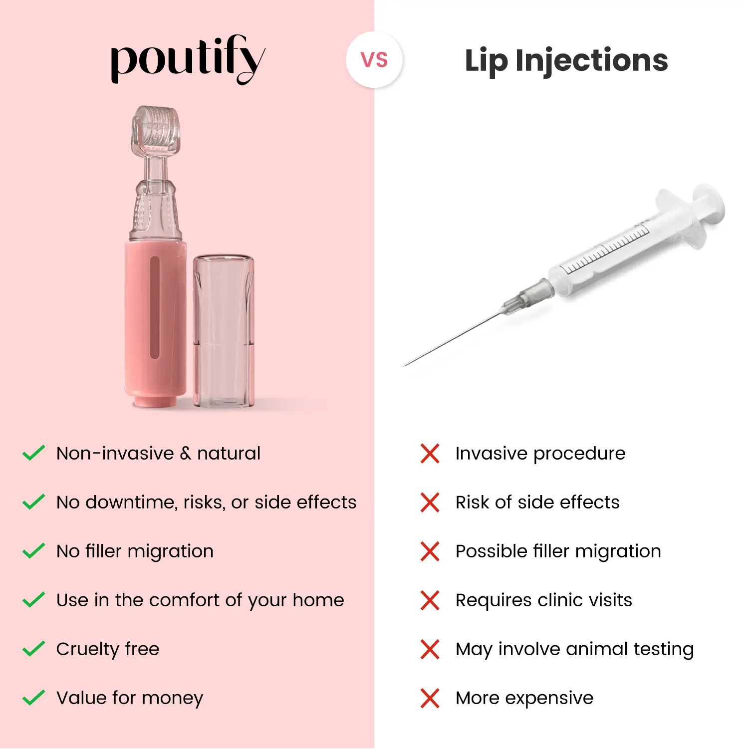 Poutify is the thing that helped me dodge the whole lip injection scene. Needles and I are like oil and water. Plus, those lip fillers horror stories...No thanks. Then poutify popped up. It's this contraption that promised lip plumpness without needles. My skeptical self thought, "Yeah, right." But hey, curiosity got the best of me. I mean, no needles and no wild side effects? That sounded like my kind of deal. So I started off using it every week and even after the first time I was like OMG my lips are PLUMPPP. I am saving money, saying no to needles, and still getting a lip upgrade. So, if you're like me, skeptical about needles and wanting to save some cash, its obvi. No needles, no drama, just a little lip magic.